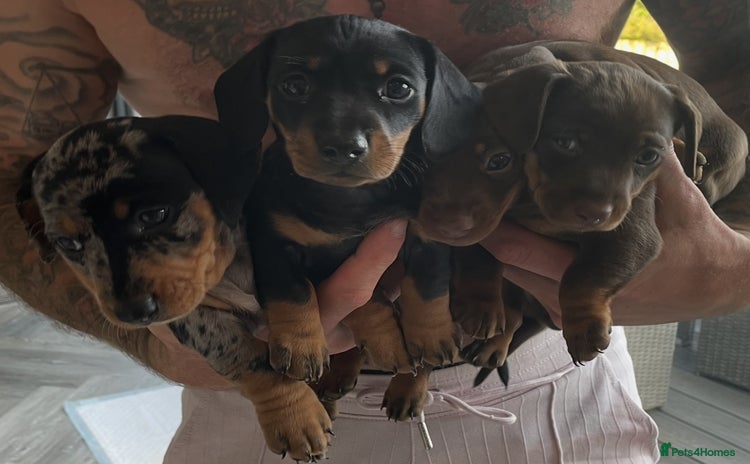 🐾💝Ready to leave next weekend💝🐾 Miniature dachshund available😍 Hi🥰my name is Laura, welcome to my advert. Please read my full advert🐾🎁🐶 My beautiful girl, gave birth to 5 amazing puppies. Mum is cream smooth haired miniature. Dad is chocolate dapple smooth haired miniature. Both parents are PRA clear. Both mum and dad share the exact same temperament, which is