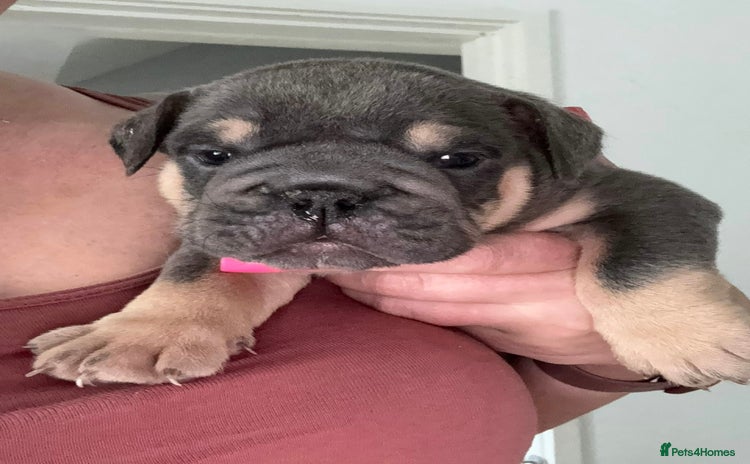 Mum: Bull pei Dad: Chocolate labrador Puppies of 6 boys and 2 girls Range of colours Boys: 1x black, 2 x liver and white patch, 1 x chocolate, 1 x white with black patch, 1 x black and white patch Girls: 2 x brown (one with white stripe under tummy Just one puppy left as deposit not been paid 😊 Male liver and white patch