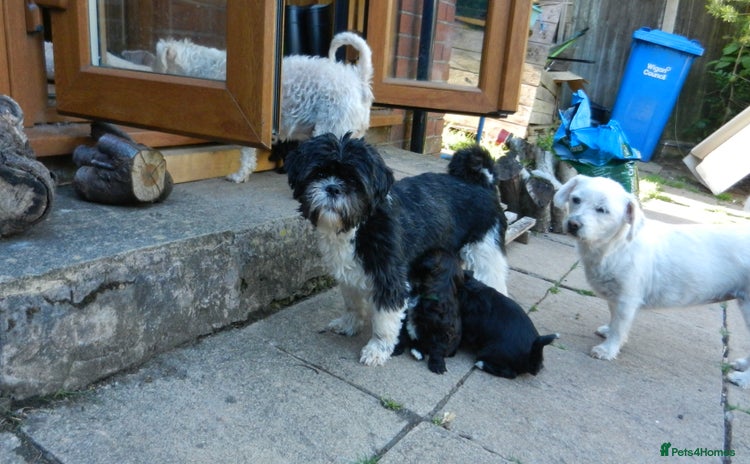Stunning pedigree Lhasa Apso puppies, born 28th October and ready to go to their forever homes on 5th January 2026. Bramble had 6 beautiful boys with unique colouring; one black with white toes and a white collar; one black and white; 3 parti-colour (honey, white and black); one patched parti-colour, honey, white and black. All are stunning with excellent coats and are lu