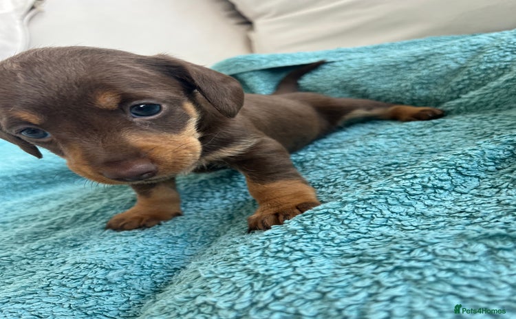 Our gorgeous girl coco has had a beautiful litter of stunning smooth coat miniature dachshund puppie on the 30/10/25 ready for their new homes on 25/12/2025 they are Excellent example Of the breed True to size so are Pure miniature , Fully kc registered puppies Mum is a beautiful chocolate and tan girl who we love This is her 1st letter . And Dad is a gorgeous Isabel boy