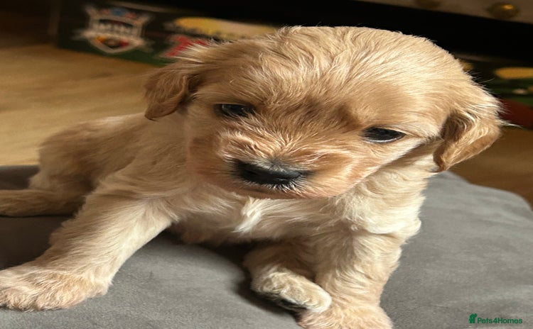 Gorgeous wee puppies, very friendly and used to kids. They have a great temperament like their mum. UPDATE 1 BOY & 1GIRL AVAILABLE Puppies are wormed and lead regularly from 2 weeks old. They are eating Royal Canin Kibble independently and are weaned off mum. They will make great family pets and are very intelligent so should be easily trained. Also their coats are non-s