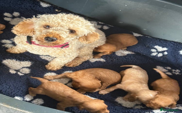 We are delighted to announce that our gorgeous girl Elsa has given birth to a healthy litter of 9 F1 Cavapoo puppies, born on 10th November 2025. 💕 We have our last 2 girls looking for their homes 💕 Elsa is our beautiful red miniature poodle, she is KC registered and regularly health checked. Elsa is a wonderful family pet and she is so lovely and friendly. Elsa loves