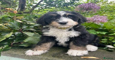 Male Cavapoochon puppy. 5mnths old. Excellent around other animals and young children. We were hoping to keep him with Mum and Dad but unfortunately we can't give them all enough time. We want him to