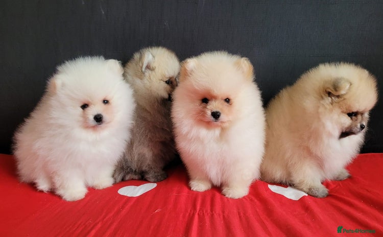 We are delighted to announce our Pomeranian has had 3 healthy babys 3 Girls ❤️Mum is White/Cream beautiful high quality fluffy KC Registered Pomeranian With Fantastic Bloodlines,Weighing in at only 2.5kg 💙Dad is cream high quality fluffy KC Reg Pomeranian With Fantastic Bloodlines Russian bloodline Weighing in at only 2kg. Puppies are in a family home with other d