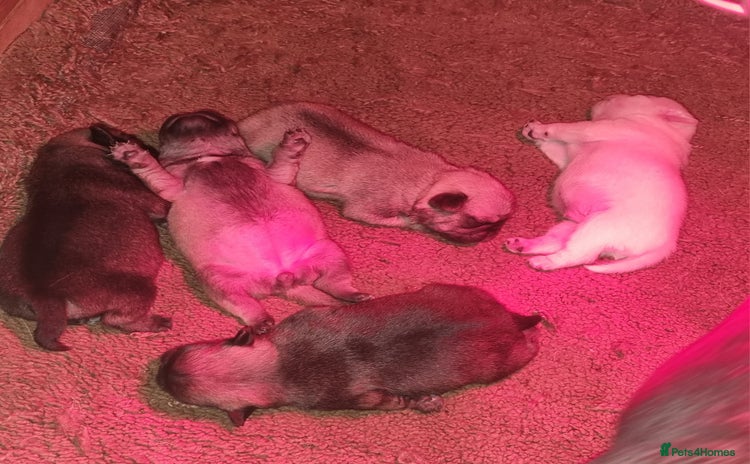 Litter of 5 male pug puppies, they are kc reg, they have been wormed and fleaed, they have been microchipped and are ready leave on Thursday the 4 th of December. One is a full chocolate and tan (rese