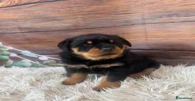 **Black boy SOLD** Here we have a gorgeous little of 7 pure breed Rottweiler puppies. 4 girls & 3 boys. Both mother and father are our beloved family pets, both KC registered and can be viewed with the pups. These beautiful babies are handled daily by both adults and children. They will be vet checked, wormed/fleed, first vaccine and chipped ready to go to their forever