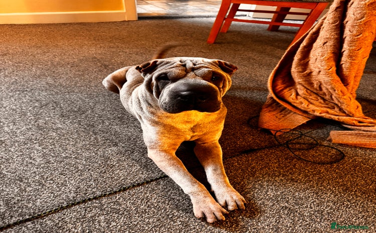 This is Eddie, the most lovely sharpei I have owned so far, he is well mannered and trained on lead however off lead he will come on recall but sometimes gets abit excited, he is a very unique colour