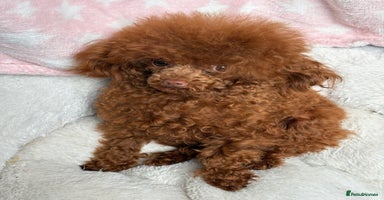 I have now sold 2 of the 4 puppies my beautiful Sybil gave birth to 5 weeks ago. They are all healthy, confident, beautiful and thriving. My deep deep red KC registered 5 generation pedigree Toy poodles are going for a bargin price £1800. I can not stress enough these puppies have the best start in life, full of love and will fit into a family from day one. Do not miss th