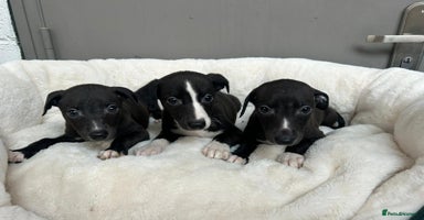 We are thrilled to introduce three exquisite male Whippet puppies of Kennel Club quality, ready to leave their loving mum in 2 weeks! You're more than welcome to come and view, and get to meet both m