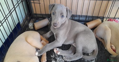 Only one male available ! He is in the pictures We have a proud litter of 9!!!! Currently have one male avaliable Strong pup broken/rough coated Will make excellent working companions or pets Pups