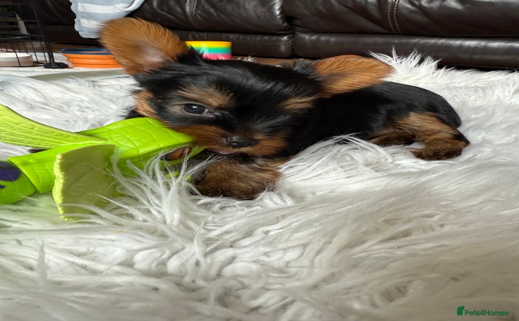 ONLY 1 BOY LEFT FOR RESERVATION!!!( yellow collar) Beautiful Puppies Ready for Reservation We have a lovely litter of Yorkshire Terrier puppies available for reservation, born to healthy Yorkshire Terrier parents. There are 3 boys The puppies are currently 4 weeks old and are being raised in a family home, well socialised and used to normal household sounds. Befor