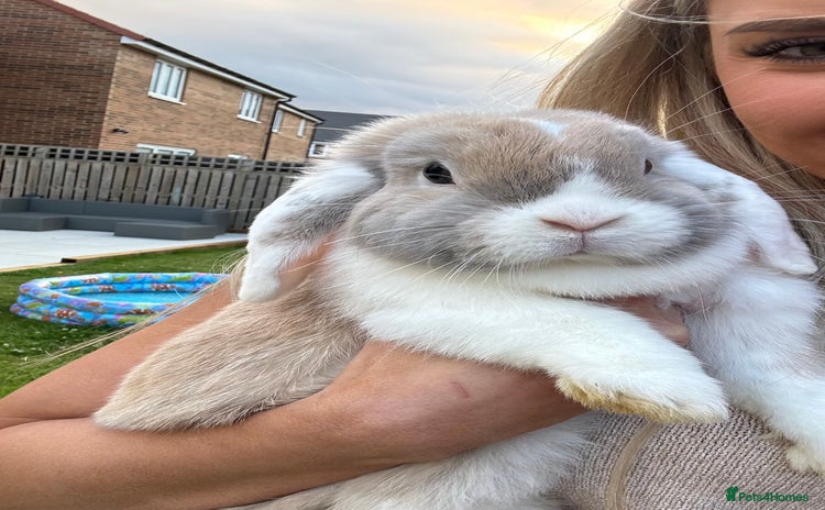 Hello, I am a hobby breeder of mini lop bunnys and aim to breed friendly loving family pets. I breed to improve my own line and sometimes have some baby’s available Availble: 💙 chocolate magpie buck- he is mainly white with bright blue eyes and small patches of chocolate on his back I have a photo with all my adult bunnys on to show you what your rabbit will grow t