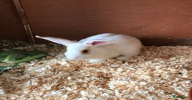 Lovely baby bunnies looking for their new homes. Mum is a Rex, Dad is a French Lop . Both are albino. Well handled. Eating and drinking well. 2 White Males