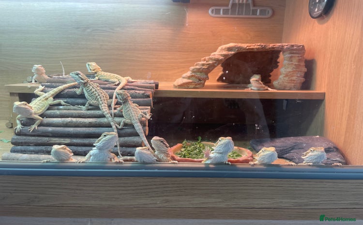 We have 10 beardies bearded dragons left! All ready for their forever homes. Born on the 21st July and are currently 4 months old. All beardies are very friendly and have been handled daily to ensure they will have a smooth transition to their new family. They are fed on a variety of greens and bugs including crickets, locusts, dubia roaches. All growing and shedding well