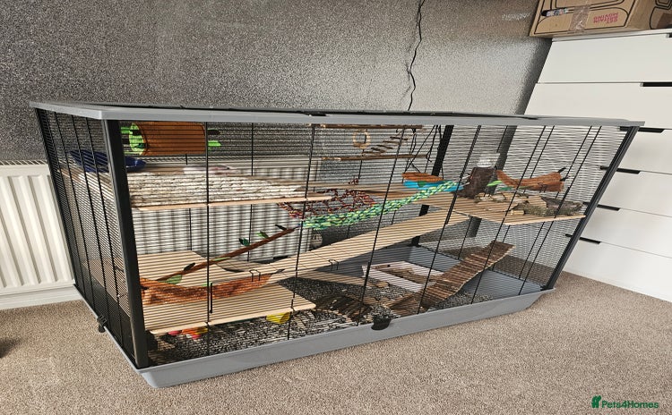 Both friendly have never bitten can come in a temporary cage that’ll do for now but will need upgrading. Both health with no respiratory issues and have never had any. Selling for a friend. Message f