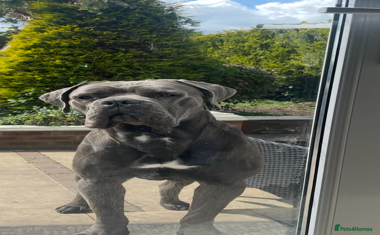 Full breed cane corso. Enzo 2 years and 8 months old. Silver colour tint of brindle in the sun from his mam Roughly 80kg need him in for weighing again Absolute machine beautiful dog, he's perfect te